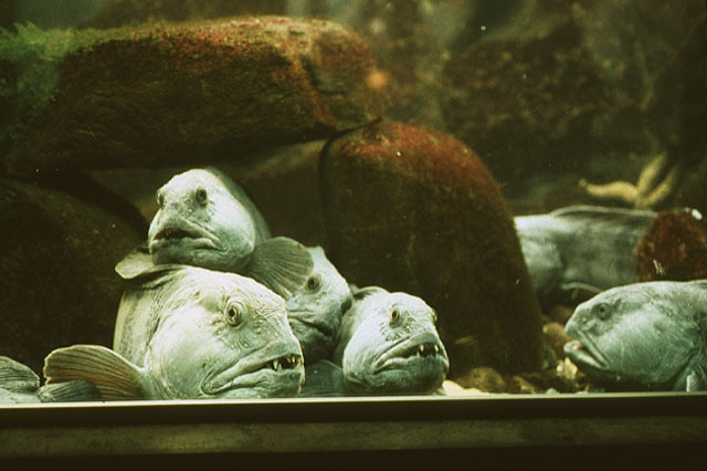 "Wolffish are not aggressive. They feed on slow-moving or sedentary prey such as sea urchins, crabs, molluscs and large snails.