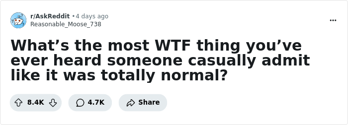Redditors opened up about the most off-the-wall things they’ve ever heard someone casually admit, and honestly, some of these should’ve stayed locked in the vault forever. But they didn’t, and now they live online for the rest of us to be horrified (and slightly entertained) by. So here we are, doing our part by passing them along.