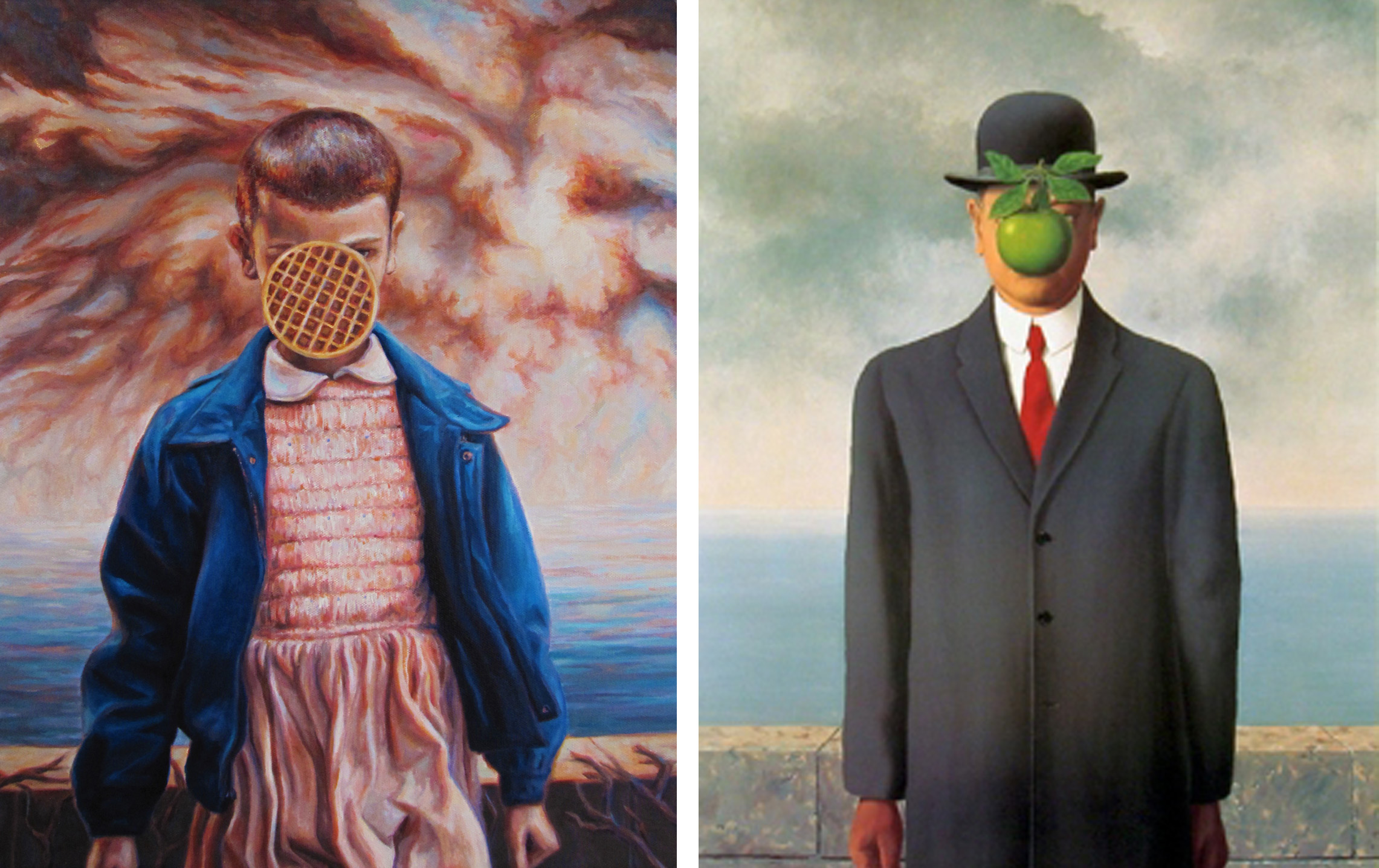 After binging Stranger Things 2 in 2017, I had an idea to paint a parody painting referencing one of René Magritte’s masterpieces, “Son of Man”. The image just popped in my head and I was so excited to get started that I pretended like my other projects didn’t exist.