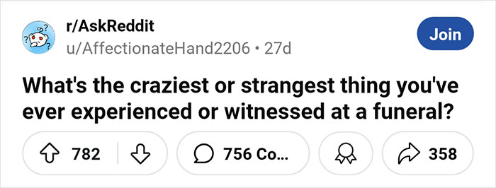 Bored Panda got in touch with the Redditor who started this thread, u/AffectionateHand2206. They were kind enough to share their own strange funeral story and tell us which entries from the thread surprised them the most. Read our conversation down below!