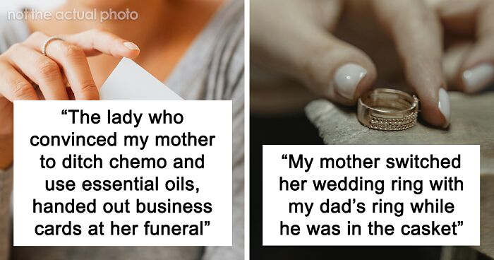 Another response that stood out to the Redditor was by u/Thernuk: "The lady who convinced my mother to ditch chemo and use essential oils handed out biz cards at her funeral." "I felt rage on u/Thernuk's behalf," u/AffectionateHand2206 tells Bored Panda.