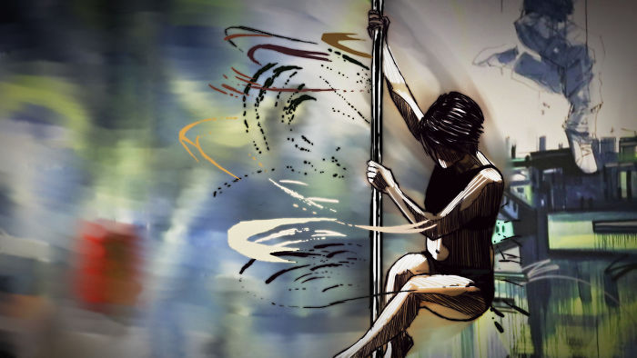 What Goes Around is a previously unreleased work that fuses together a variety of techniques to create a layered, final effect—from rotoscope to full animation.