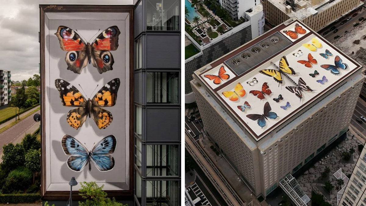 Specimen Boxes: 33 Giant Butterfly Murals Painted By This French Artist Across The World (New Pics)