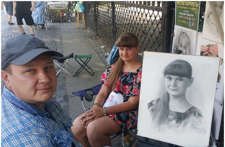 Nikolay decided to draw people on the streets to earn some money. "I realized that things were going well and that inspired me to continue and I do that until this very day."