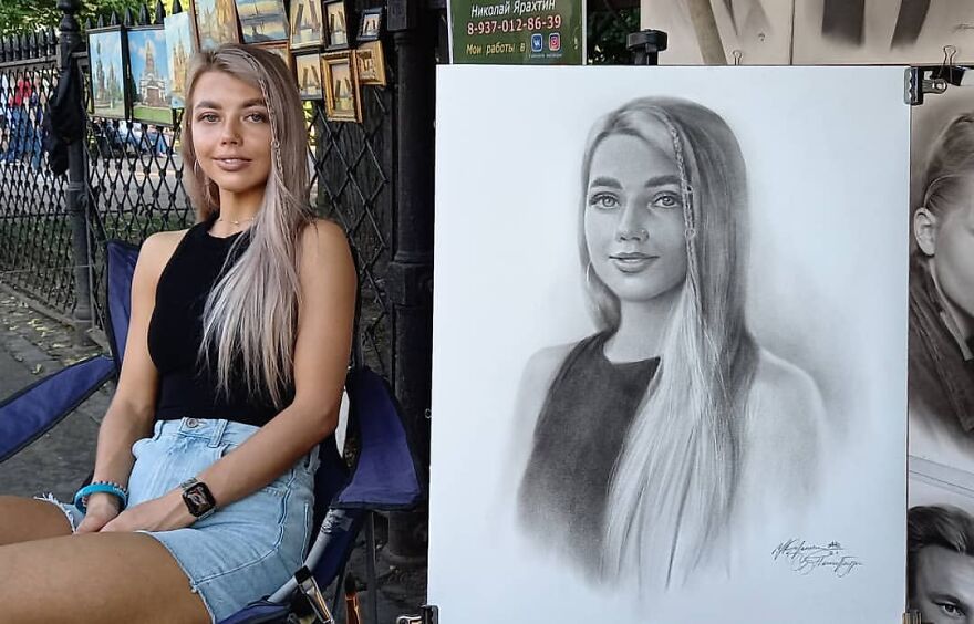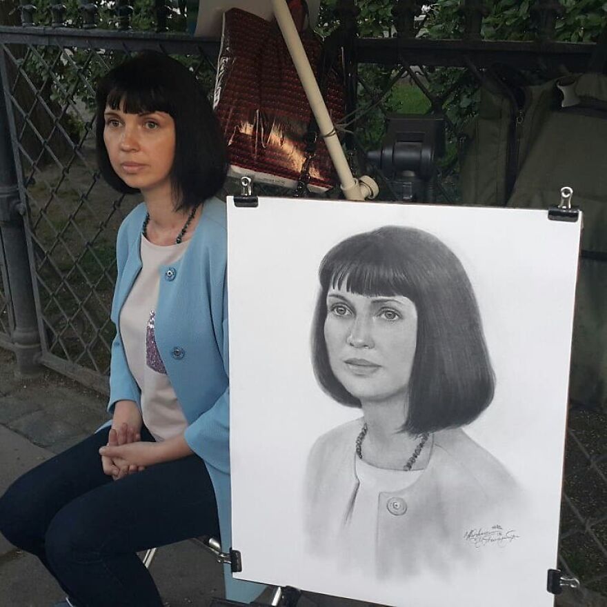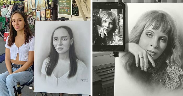 This Russian Street Artist Draws Photorealistic Live Portraits And Each One Takes Up To An Hour (102 New Pics)