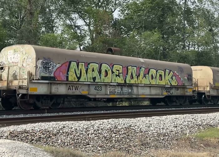 In response to the previous comment by DadManBlues... I think ur missing the point here... They made it big enough to catch attention. It doesn't matter if it is written over 1 train carriage or 50. The point is that it was written in the first place.