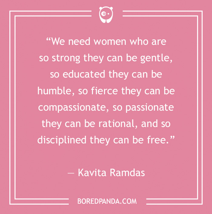 “We need women who are so strong they can be gentle, so educated they can be humble, so fierce they can be compassionate, so passionate they can be rational, and so disciplined they can be free.” — Kavita Ramdas