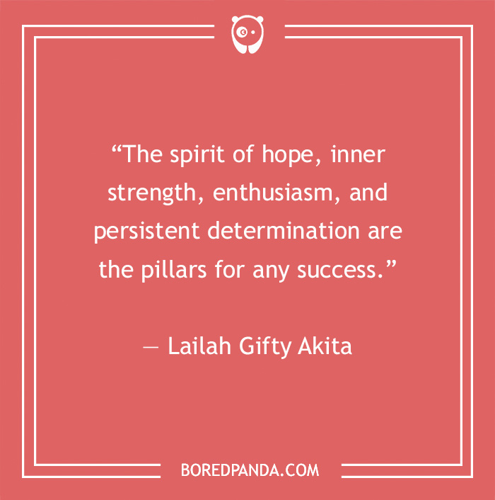 “The spirit of hope, inner strength, enthusiasm, and persistent determination are the pillars for any success.” — Lailah Gifty Akita