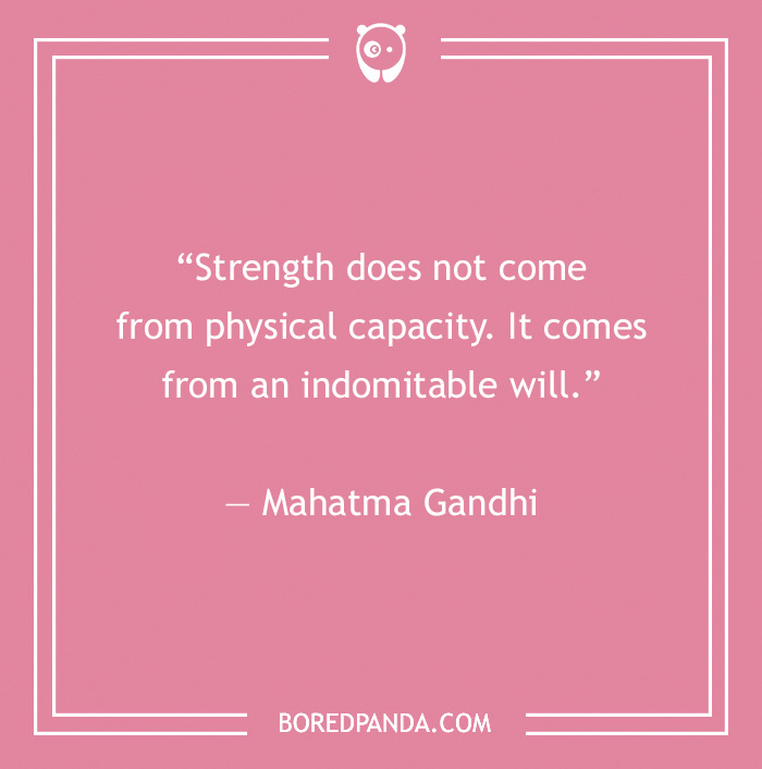 “Strength does not come from physical capacity. It comes from an indomitable will.” — Mahatma Gandhi