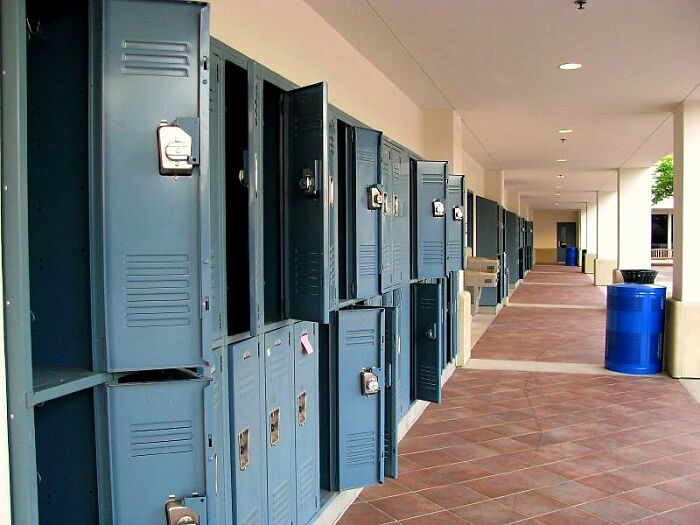 I was thinking the same. When I was in school we didn’t have middle school. Grade school up to 6th didn’t have lockers but I think we had a home room to stash belongings. Starting in 7th grade we had lockers with combination locks. I think they were numbered and provided by the school. If someone forgot the administration would handle it.