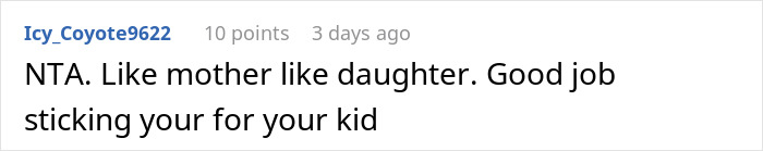 Load More Replies...mom always made it clear that if i got in trouble bc of something i did she would not support my actions. but, if something happened that was not my fault but fell on me she would support my actions. she was true to her word & i learned not to mess about. she took on the dean of students once when i was accused of cutting class in order to smoke or worse as he had seen me coming back from a nearby store. told her why i was off campus & she proceeded to shame him on the fact that the school or nurse's office did not offer sanitary products & that was the reason i had left. this was back in the early 70s when girls weren't supposed to bring attention to their natural functions. will never forget he was wearing a burgundy jacket & as she described the issue his face matched it perfectly.