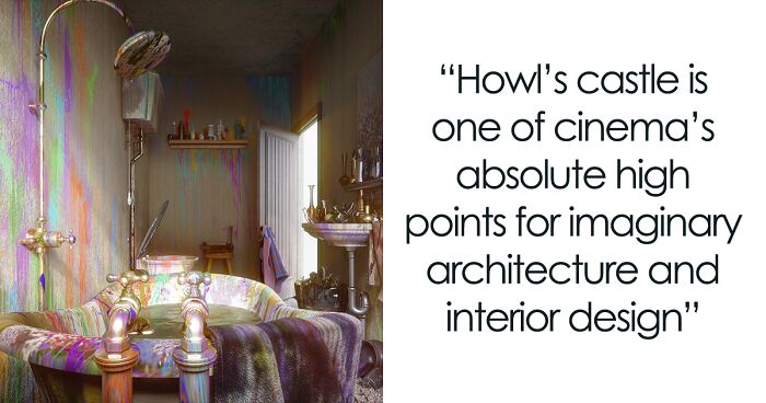 “In Hayao Miyazaki’s favorite Ghibli movie, a jealous witch turns a young milliner called Sophie into an old woman. Attempting to shake her curse, Sophie finds work as a cleaner at a wizard’s fantastical castle. Howl’s castle is one of cinema’s absolute high points for imaginary architecture and interior design.