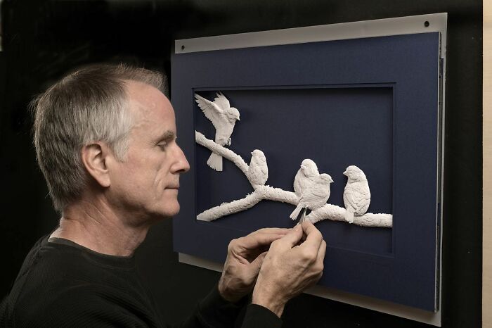 Today, we’re delighted to introduce you to Calvin Nicholls, a man who transforms simple sheets of paper into something extraordinary. Using archival paper, scalpels, and embossing tools, and drawing inspiration from wildlife, the Canadian artist sculpts detailed, lifelike 3D pieces that look as if they could move.