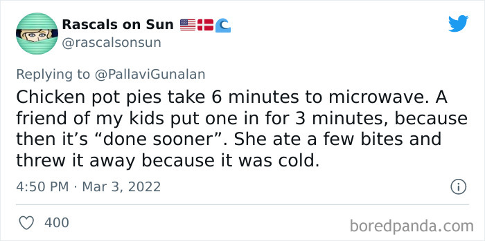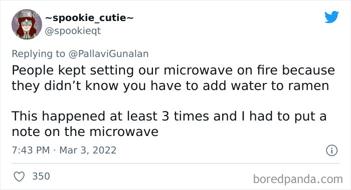 Pallavi Gunalan’s tweet prompted a deluge of reactions. Many users chimed in with countless encounters where they witnessed their friends doing something ludicrous or downright dumb. Later on, Pallavi also posted a follow-up tweet about her friend’s situation: "I gave her an extra microwave I had. Really hoping she didn’t throw it away."