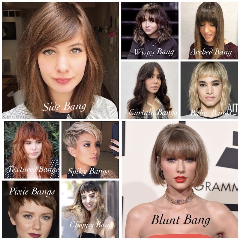 fringe and bangs mean the same thing. apparently it came from the expression "cutting hair bang-off" meaning cutting straight across at the front. not sure why it's plural though. there's many different types bangs.jpeg