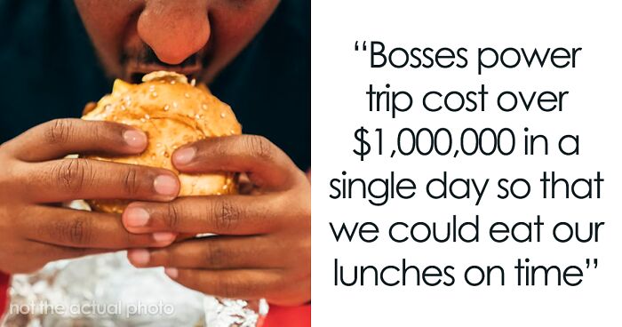 TLDR: Bosses power trip cost over $1,000,000 in a single day so that we could eat our lunches on time.