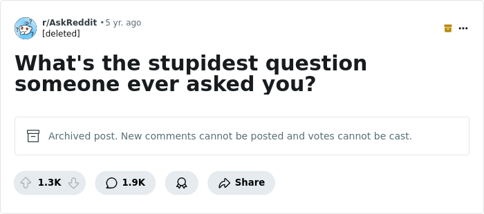 Someone asked “What's the stupidest question someone ever asked you?” and netizens shared the most mind-numbing queries they’ve ever heard. So get comfortable as you scroll through, prepare to be deeply confused, upvote the most unhinged examples and if you’ve also heard a deeply dumb question, feel free to share it in the comments below.