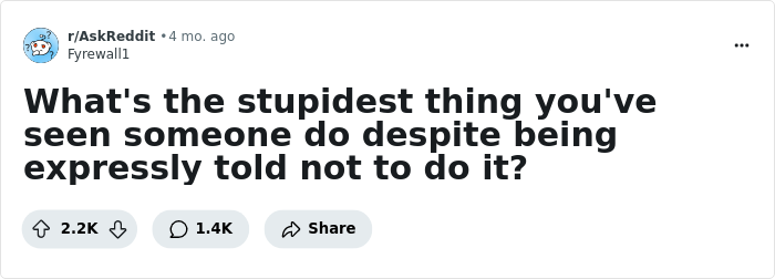 An abundance of stoopid things people—young and old—have done in their lives was recently discussed by members of the “Ask Reddit” community. One user asked them, “What’s the stupidest thing you’ve seen someone do despite being expressly told not to do it?” and the community delivered.