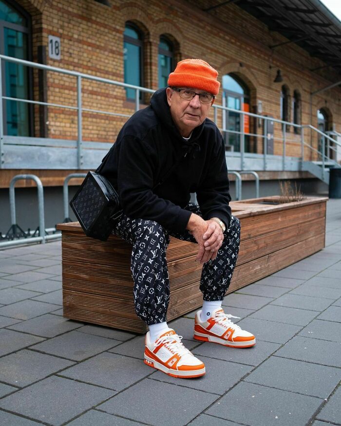 Eventually, as Gramps tried on more and more outfits and Jannik took more pictures of him, he incorporated streetwear into his everyday looks and really got used to it. "Nowadays, he can't leave the house without wearing his favorite sneakers and streetwear."