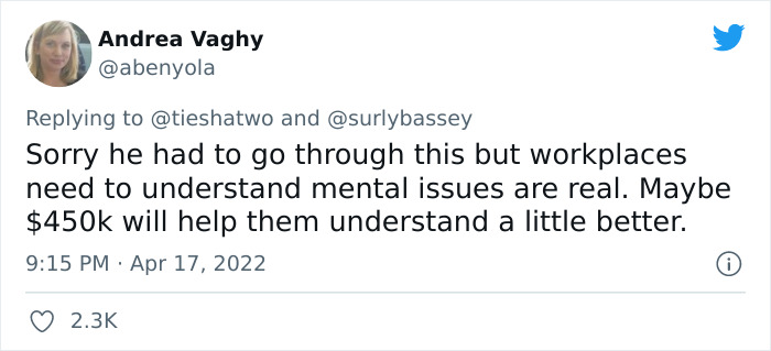 So he sued the company and won the case, receiving $450k as compensation