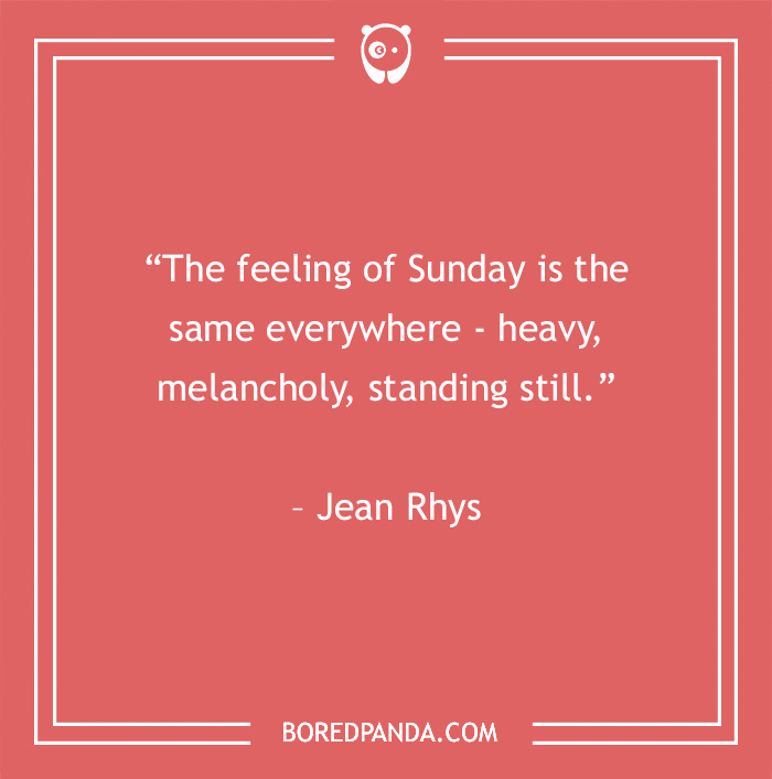”The feeling of Sunday is the same everywhere - heavy, melancholy, standing still.” – Jean Rhys