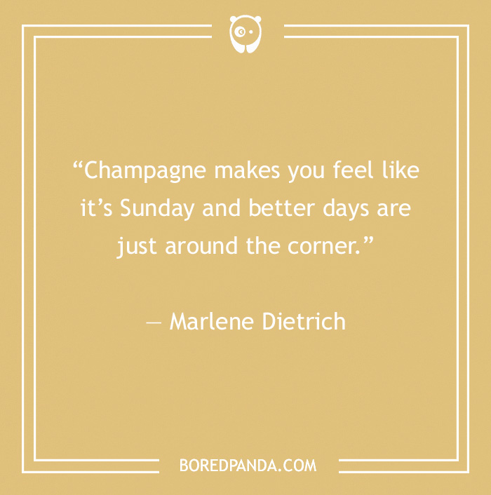 “Champagne makes you feel like it’s Sunday and better days are just around the corner.” — Marlene Dietrich