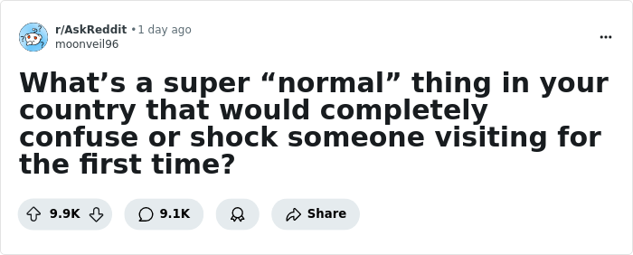 What thing from your country would seem odd to newcomers? Share with us in the comments!