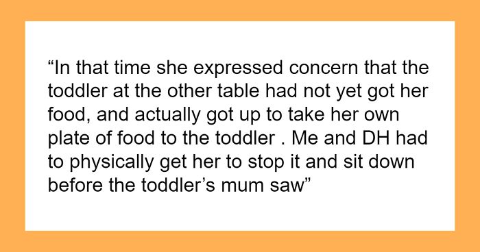 Load More Replies...I feel there are ways to gauge her true intentions... Like with ice cream. When she asked to buy ice cream, why not just say, "he doesn't like ice cream, but if you'd like to get him chocolate that'll be sweet" and see how she responded. The same thing with planned trip. Why not just tell her, "We planned this for you, so if you don't want to go, we'll scrap it". And the incident with dinner... What's wrong with just letting her take her plate to the mom? The mom can tell her off (or accept it). No need to take it upon yourself to monitor their behaviors.
