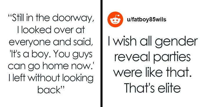 Load More Replies...Ah, the good old "ignores clearly expressed indication that the person does NOT want something, goes behind their back, then turns on the waterworks when for some strange reason it ends badly". The girlfriend is a bully and a manipulative creep. And I agree: gender reveal parties are a load of BS and need to stop.