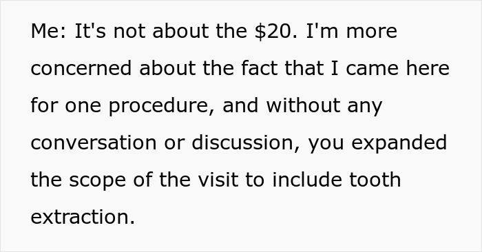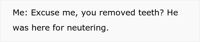 The author of the post asked why he wasn’t told about this on previous visits or even in the morning when he dropped off his dog, but the woman kept beating around the bush, explaining all the perks and potential difficulties that not removing the teeth would’ve brought.