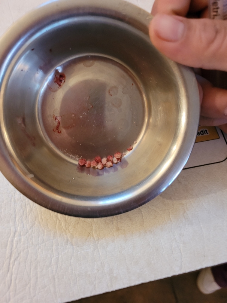 My poor cat had stones in his bladder. He had surgery and is better now. Both cats are now on a special diet. $96/case of 24 cans. They are worth it. (See picture of his stones) Resized_10...b-jpeg.jpg