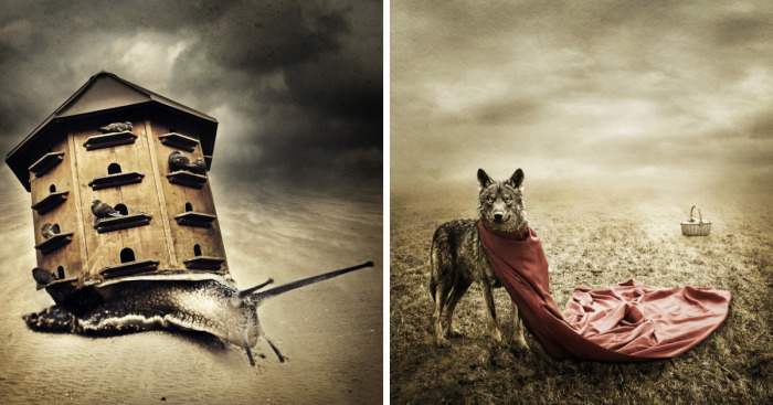 I started this project because, alongside my artistic work as a self-portrait artist, I love to create a fantastic and imaginary world where animals and nature meet in surreal atmospheres.