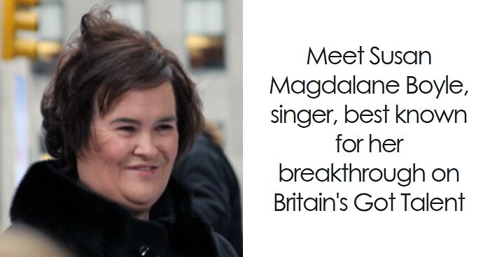 Susan Magdalane Boyle is a Scottish singer, known for her powerful mezzo-soprano voice and inspiring journey. She has captivated a global audience with her heartfelt performances.