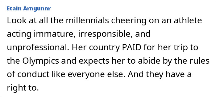In other parts of her post, the swimmer said that Olympic officials “tried to take [her] accreditation away, but that’s not something they had the right to do.”