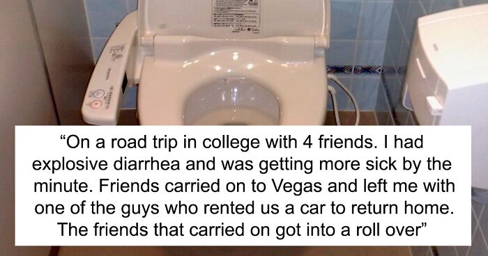 On a road trip in college with 4 friends. We stopped halfway for a pit stop because I had explosive diarrhea and was getting more sick by the minute. Friends carried on to Vegas and left me with one of the guys who rented us a car to return home.