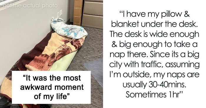 At least this is what this Redditor experienced when he tried to deal with sleep deprivation from working at night by taking half to one-hour-long naps under his office desk until he was discovered by his manager.