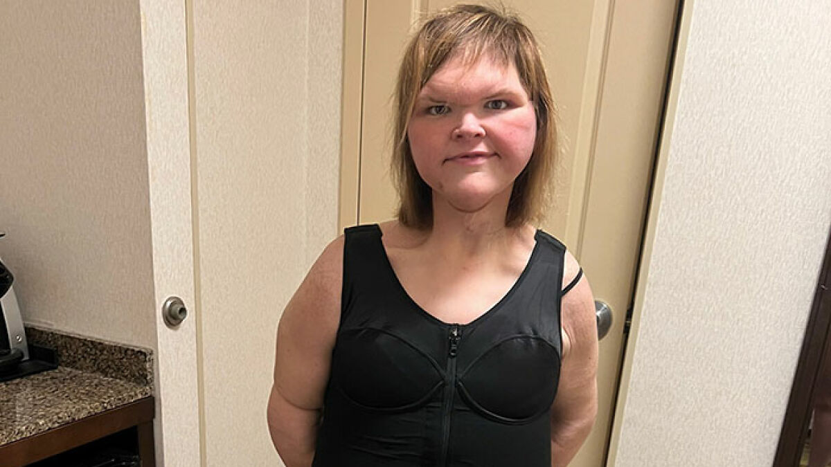 During the 8-hour procedure, doctors removed “over 15 lbs.” (approx. 6 kg) of excess skin from her chin, stomach, and arms, which had been left hanging after her impressive 500-pound weight loss.
