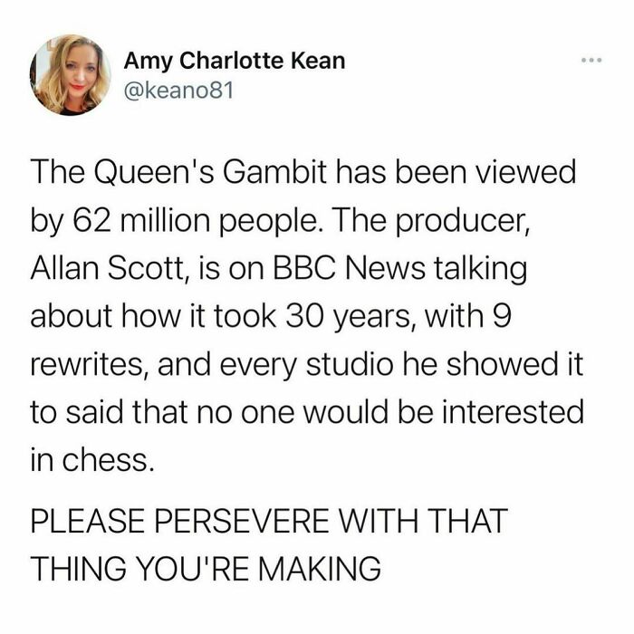 He's also being sued for diminishing the achievements of real women who actually played chess, so maybe accuracy when depicting real people should be a goal too