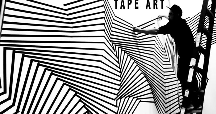 Tape Installation at Wiretap Brewing in Los Angeles: Dimensionalizing the Corner, 2018 by artist, Darel Carey