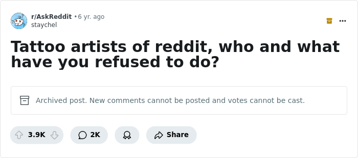 Has a tattoo artist ever refused service to you? Or maybe you've refused it to someone? Please, share all your stories with us!