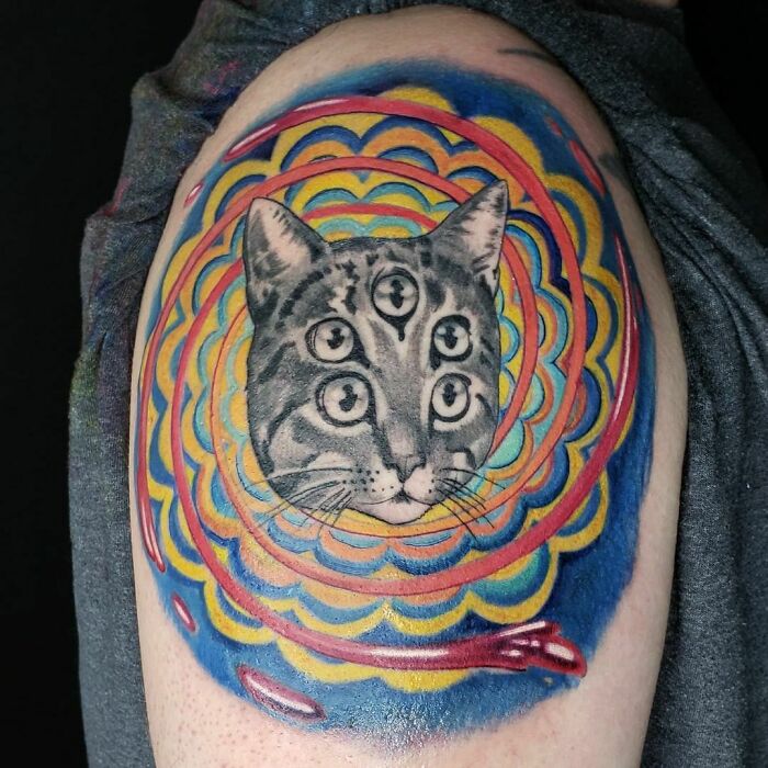 Psychedelic Cat Done By Dennis Hamilton At Canvas Tattoo In Charlotte, NC