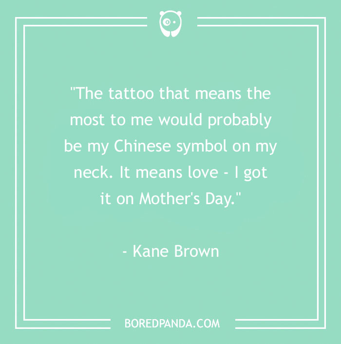 "The tattoo that means the most to me would probably be my Chinese symbol on my neck. It means love - I got it on Mother's Day." - Kane Brown