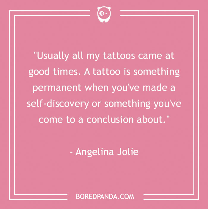 "Usually all my tattoos came at good times. A tattoo is something permanent when you've made a self-discovery or something you've come to a conclusion about." - Angelina Jolie