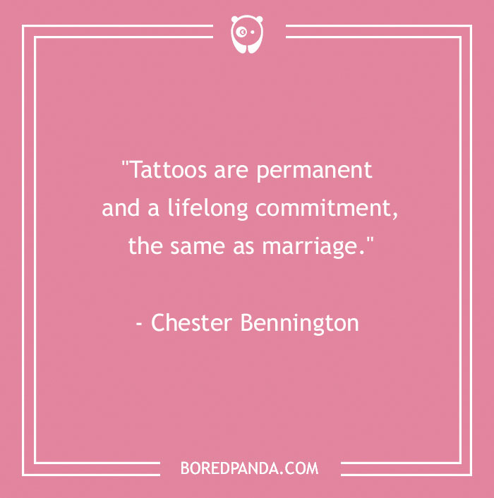 "Tattoos are permanent and a lifelong commitment, the same as marriage." - Chester Bennington