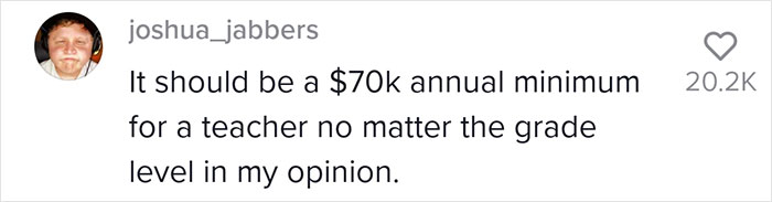 Load More Replies...So sick of people saying teachers shouldn't get fair pay because they have so many holidays , my daughters teach and i can tell you the holidays are spent marking , grading , planning of lessons so they spend a lot of the holidays doing just that , they dont just pick a book up and teach from that , they have to make it fun so it sticks ( they teach young ones 5/6 year olds ) my eldest has had her teaching methods copied in many schools and she's only 30 , but she dont get paid to reflect that.