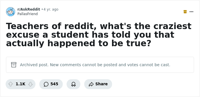 But once in a while, pupils come up with such outlandish justifications for their actions that they just have to be telling the truth. Educators on Reddit have recently been recalling the craziest excuses they’ve heard from students that were somehow true, so we've gathered the wildest ones below.