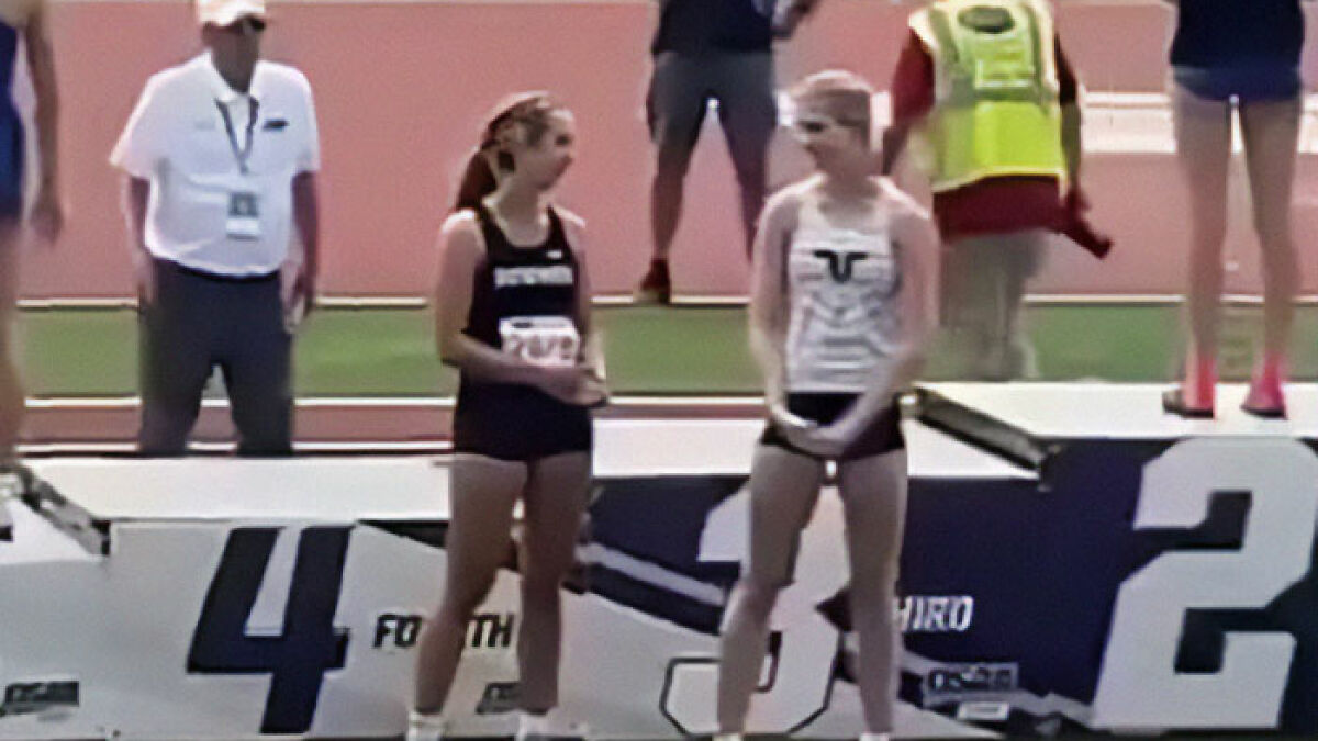 High school track star Reese Hogan takes her rightful spot in first place after “finishing second” to a deluded male competitor.