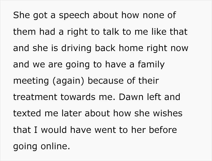 Most readers sided with OP and were shocked at her family’s behavior