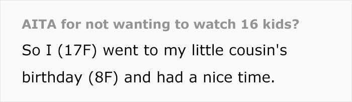Just looking after a single kid is enough work. It’s no wonder many nations set up pretty expansive parental leave rules because otherwise having a child becomes an impossible mission. Probably the best-known examples of this are in Scandinavia, for example, Denmark, where new parents are given a whopping 52 weeks of leave to split between them, so both can be involved in raising the child. But even parents need a break, as in OP’s story, so the age-old solution is to hire a babysitter. But OP’s family seems to have gotten greedy and wanted a free babysitter. Now, the cost of living is tough these days, but looking after sixteen children, all going nuts at a birthday party is not a reasonable request.