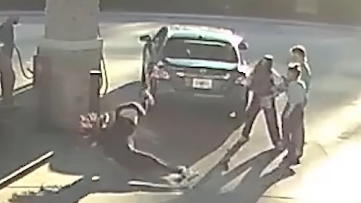 - The brawl saw the victim body slamming one of the assailants.